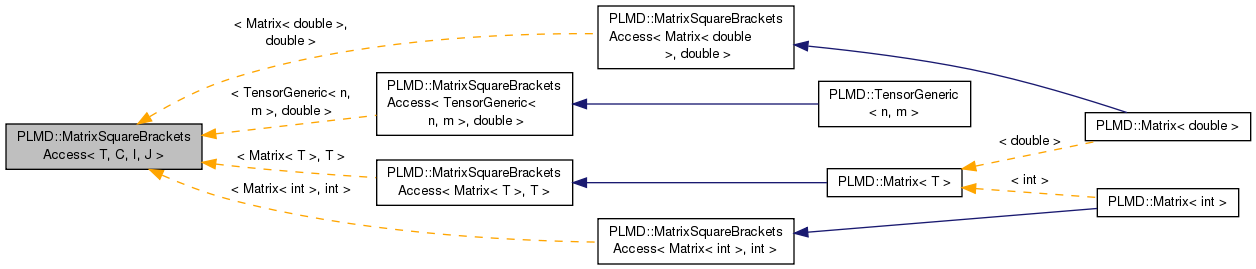 It implements the trick described in C++ FAQ 13.12 to allow [][] access to matrix-like classes, based on the (,) syntax, thus translating [i][j] into (i,j). In practice, one only needs to implement the (,) syntax and to inherit from MatrixSquareBracketsAccess. The first template parameter (T) should be the class itself, the second (C) is the type of the returned value, and the third (I) and fourth (J) are the types of the two indexes (unsigned by default). As everything is inlined, no overhead is expected.