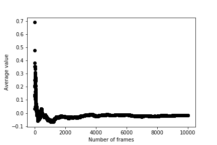 We can do the same with the data from our MD trajectory. We replace the \(X_i\) in the equation above with the CV values calculated for each of our trajectory frames.