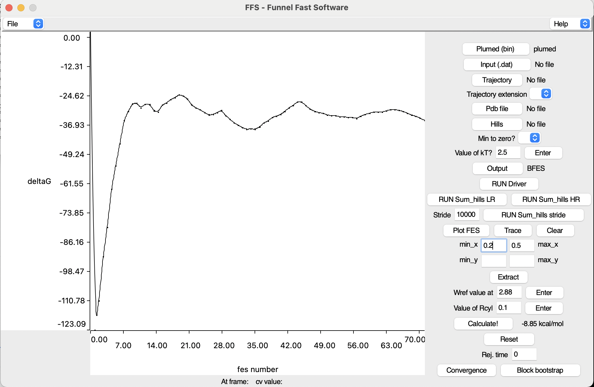 Hint for the user: if you reweighted your simulation, make sure that the created files have the same name as the files generated by sum_hills (e.g., fes_1.dat). The interface automatically takes all the files with that format and will not recognise any other FES file.